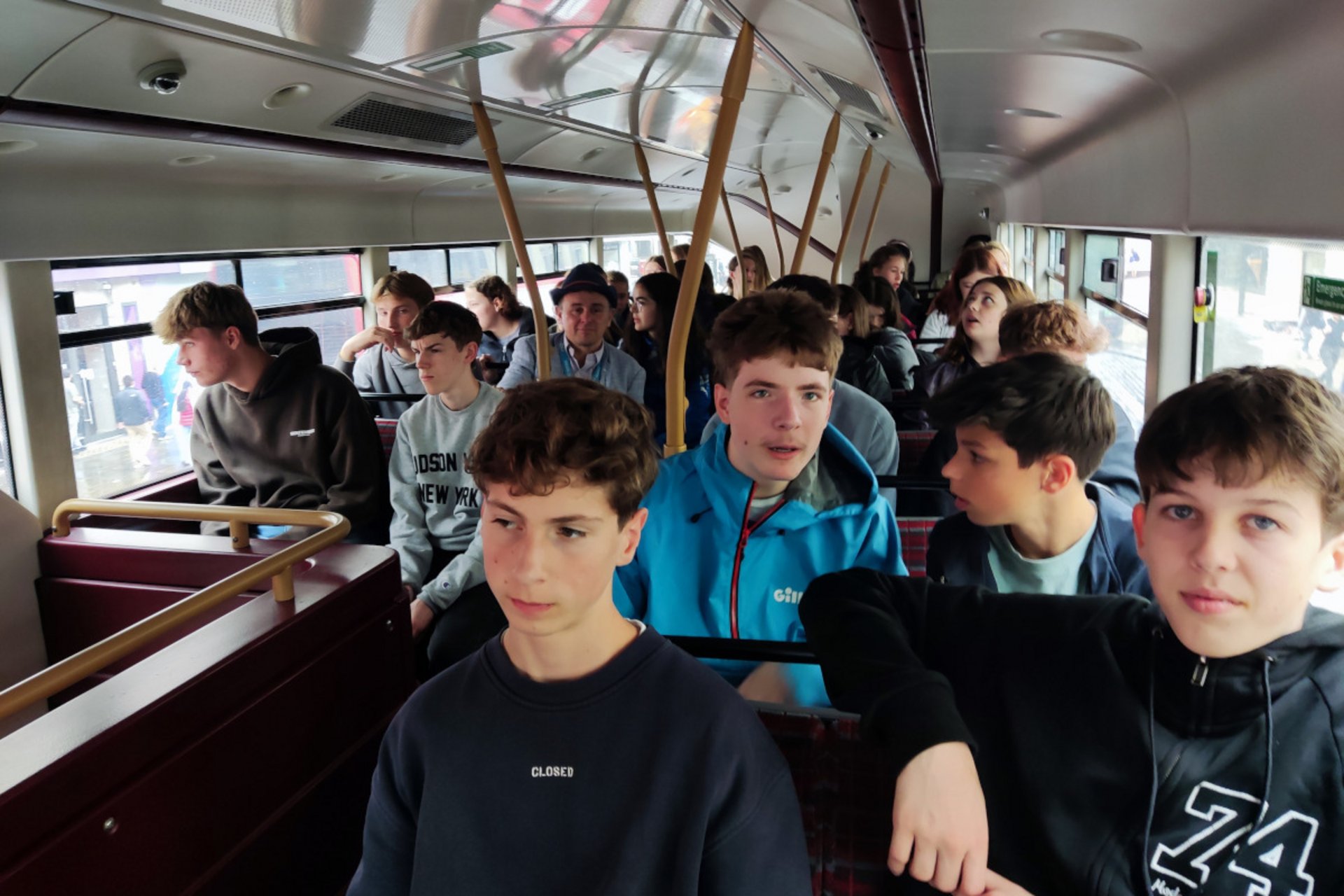Die Reise begann bereits Sonntagnacht, wo der Bus trotz einiger kleiner Fehlpackungen beinahe pünktlich um 3.00 Uhr in aller Herrgottsfrühe nach England aufbrach. Nach einigen Stunden erwachten dann auch die letzten wieder mit der ein oder anderen Nackenverspannung aus ihrem der Abfahrtszeit geschuldeten Busnickerchen. Schließlich noch eine Fährfahrt, Passkontrollen, einige Aufschreie, man würde sich im Gegenverkehr befinden (sie hatten alle nur konsequent den Linksverkehr in England vergessen) und so manche Diskussion darüber, ob sich die englischen Häuser als Retro und irgendwie süß oder doch hier und da als einfach älter bezeichnen lassen, und die Gruppe kam am späten Nachmittag am Ziel ihrer Reise an.